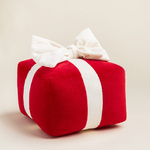 Świąteczna poduszka dekoracyjna Czerwony Prezent ze Złotą Kokardą